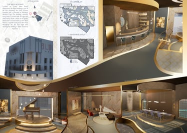 Working within a heritage building and being able to understand its heritage importance and site conditions. Create an exciting and memorable hotel space, the client has given the designer free rein in being able to determine the hotel name and look and feel for this space. The aim of this brief is to understand advanced hospitality design and to understand lighting design principles.